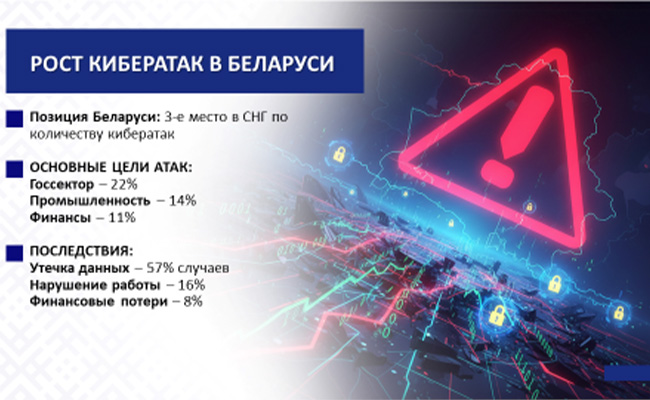 Электронные сервисы, интернет-банкинг, удаленная работа и учеба, онлайн-регистрации, интернет-магазины и маркетплэйсы – все это настолько прочно вошло в нашу повседневность, что иногда трудно поверить, как жили без этого раньше. Чем больше погружаемся в мир информационно-коммуникационных технологий (далее – ИКТ), тем больше становимся уязвимее.Кибератаки на информационную структуру – это одна из самых значительных и постоянно растущих угроз для глобальной безопасности в XXI веке. На фоне всеобщей цифровизации эта проблема не просто нарастает, а эволюционирует, на что влияет широкое использование искусственного интеллекта (далее – ИИ), так как злоумышленники начинают использовать его для создания более изощренных вредоносных программ, автоматизации атак и анализа уязвимостей.Кибератаки превратились из проблемы технических специалистов в одну из главных стратегических угроз национальной, экономической и общественной безопасности любой страны.По результатам исследования, проведенного в прошлом году, Беларусь находится на 3-м месте в рейтинге стран СНГ, которые чаще всего подвергаются кибератакам.Каждая пятая атака в Беларуси приходится на госсектор (22%). На втором месте – сфера промышленности (14%), а на третьей строчке – финансовая отрасль (11%). Много атак также нацелены на сектор телекоммуникаций, сферы науки и образования (8%).Каждая вторая кибератака (57%) приводит к утечке конфиденциальных данных. Реже они нарушают основную деятельность (16%) или несут прямые финансовые потери (8%). Более половины украденных сведений составляют персональные данные и коммерческая тайна. Актуальной проблемой остается кража денег с банковских карточек и электронных кошельков.